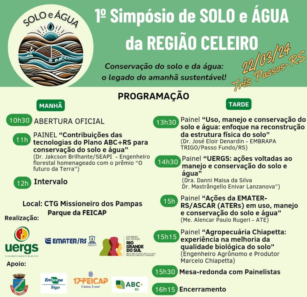 O 1º Simpósio de Solo e Água da Região Celeiro, com o tema “Conservação do solo e da água: o legado do amanhã sustentável”, integra a programação oficial da 17ª FEICAP – Feira de Exposição Industrial, Comercial e Agropecuária de Três Passos. A iniciativa será realizada no dia 22 de março, das 10h30min às 16h15min, […]